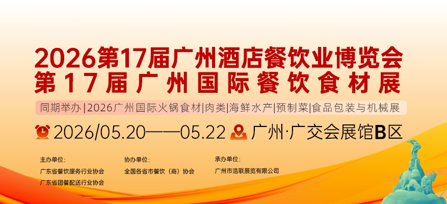 2026第17届广州餐博会暨大湾区餐饮预制菜产业展将于2026年5月20-22日在广州琶洲国际会展中心B区举办,规划展览总面积达80000平方米,预计将有2000家中外品牌参展,100000名专业观众到场参观采购。